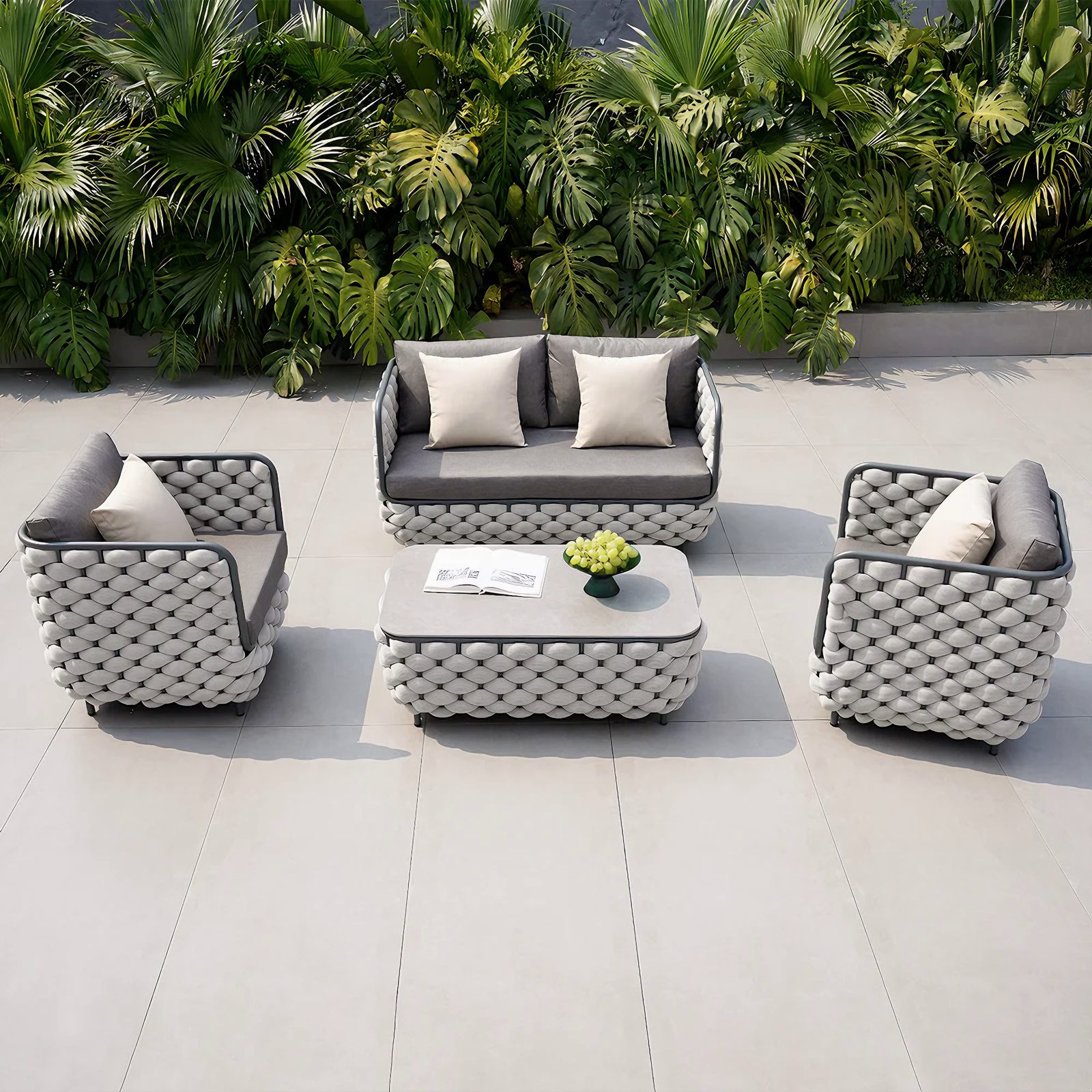 Zestaw wypoczynkowy wygląda nowocześnie i idealnie pasuje do naszego ogrodu. Materiał jest łatwy w czyszczeniu i odporny na różne warunki pogodowe. Naprawdę piękny dodatek do ogrodu.