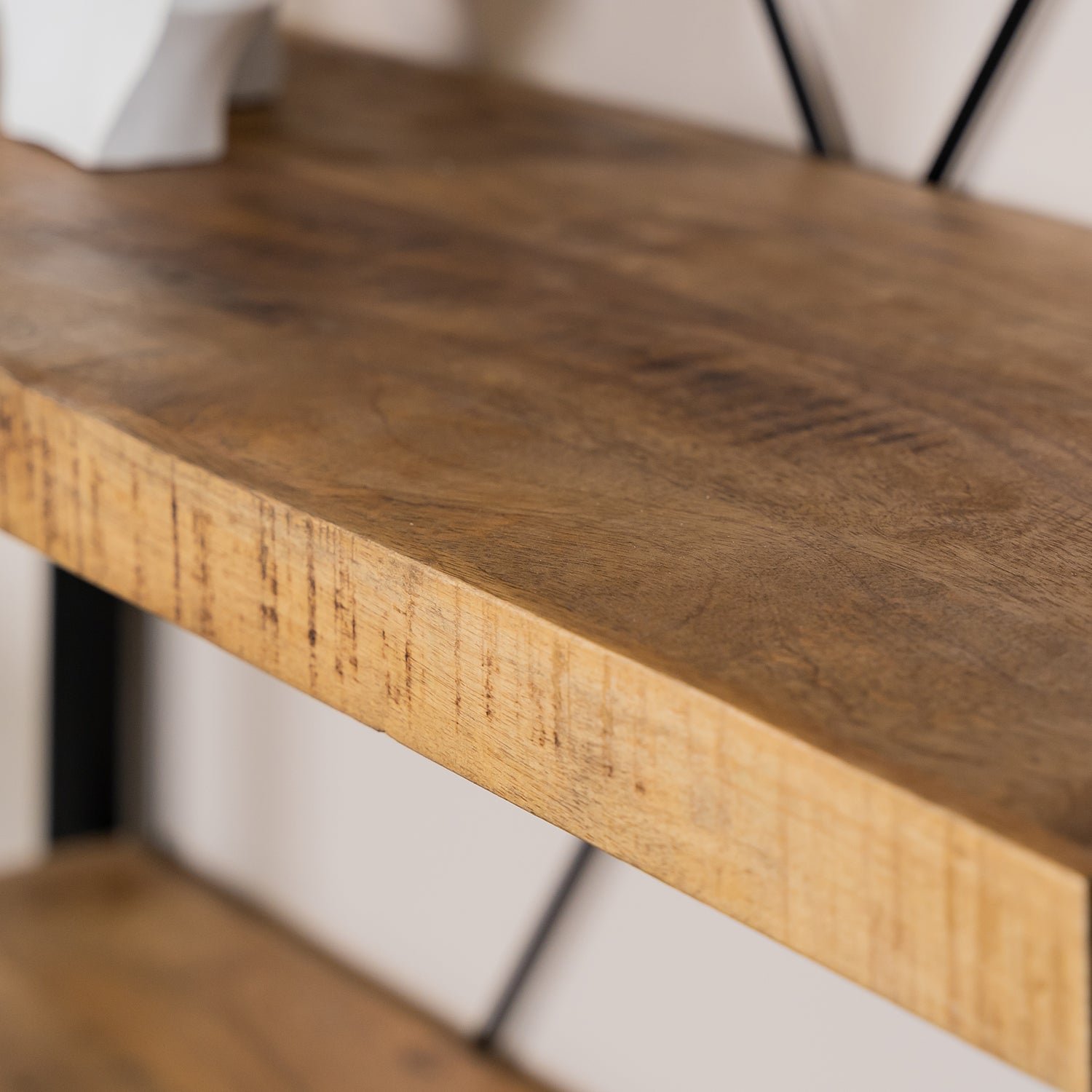 Połącz ten piękny, szeroki regał z drewna mango z innymi meblami z serii Britt, takimi jak stylowa konsola (sidetable), szafka RTV czy stolik kawowy.