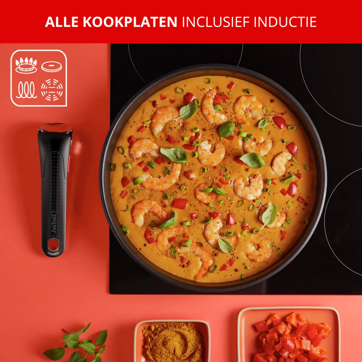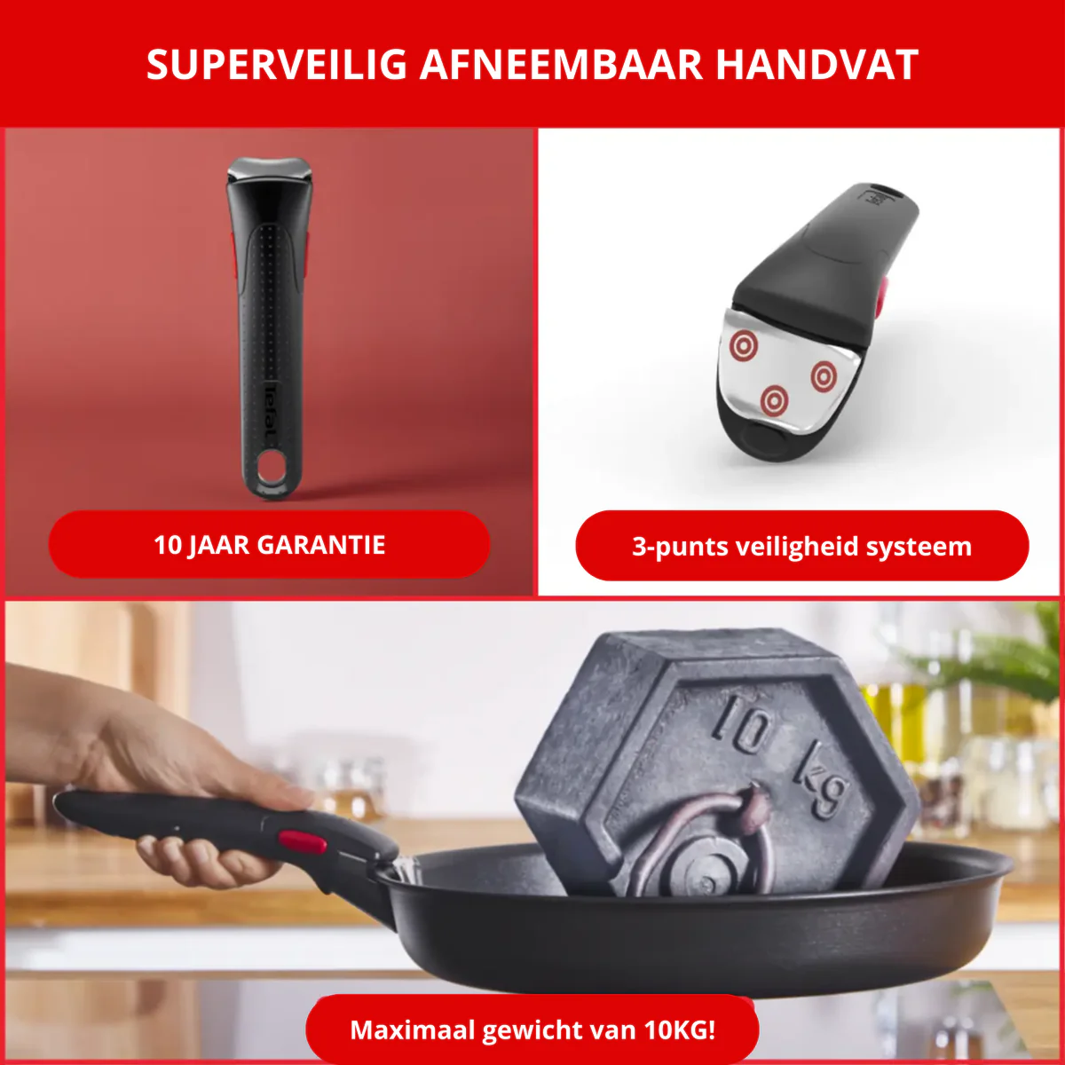 4 Pannenbeschermers + 3 Accessoires (Lepel, Spatel, Sleufspatel) + 2 Verwijderbare handvatten